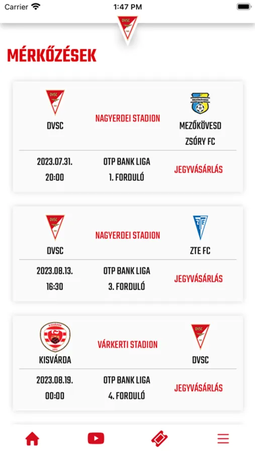 Az app segítségével egyszerűen elérhetők az egyéb social media felületeink is, és még a jegyvásárlásod is megkönnyítheted!