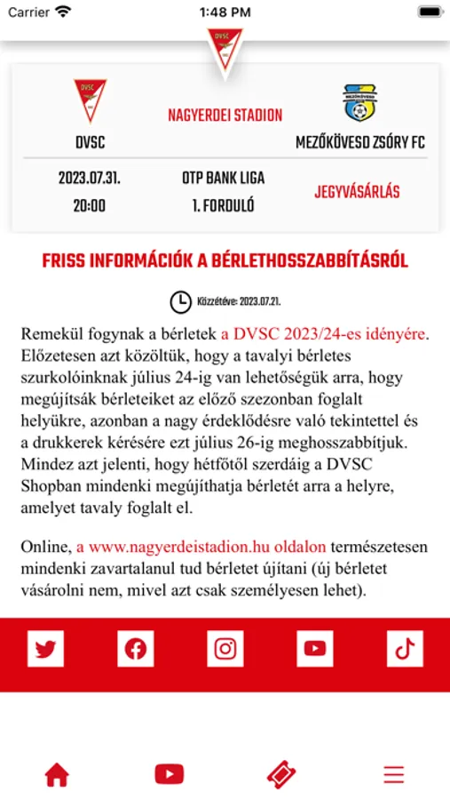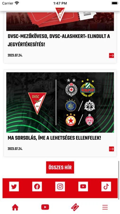 A DVSC applikáción keresztül figyelemmel kísérheted legfrissebb híreinket, nyomon követheted a mérkőzéseinket, eredményeinket.