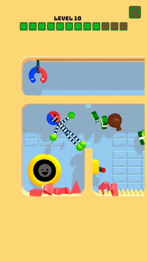 In this unique puzzle game, your task is to skillfully control the magnet by tapping the screen, magnetizing the character, and guiding them through intricate mazes. However, be cautious, as you'll need to avoid various obstacles to reach the exit!