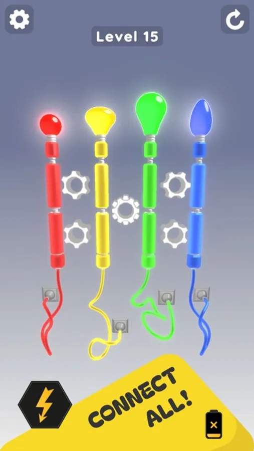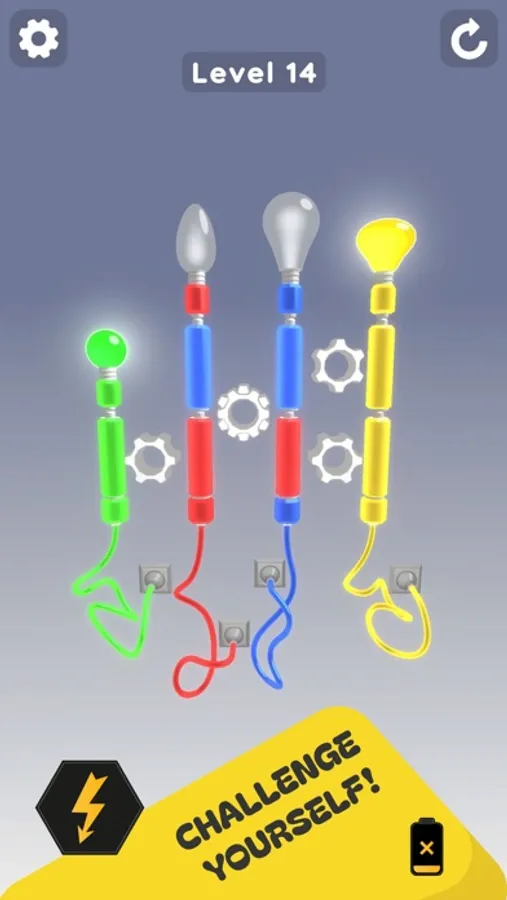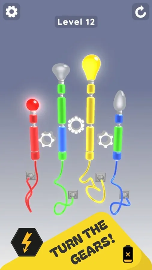 Experience an electrifying adventure in each level of this game! Tackle the challenge of sorting tangled cables amidst a sea of vibrant gears and bulbs. Rotate the gears strategically to match the cable colors and watch as the connected bulbs illuminate! Enjoy the excitement of electrifying puzzles and gear-based control in this captivating game!