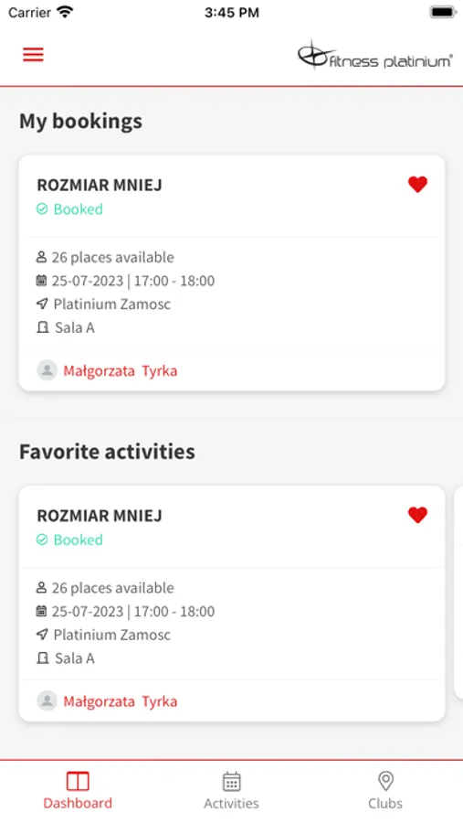 Aplikacja dla klubowiczów Fitness Platinium Zamość.