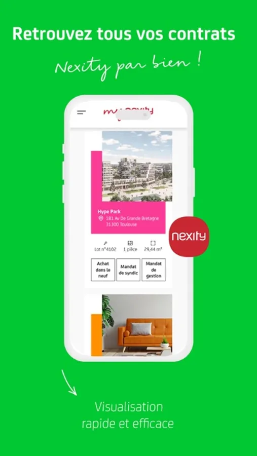 Avec myNexity, vous pouvez suivre l'évolution de votre logement neuf, gérer vos services immobiliers tel que votre gestion locative (bailleurs, et locataires), gestion Studéa, copropriétés et bénéficier de nombreux services immobiliers.