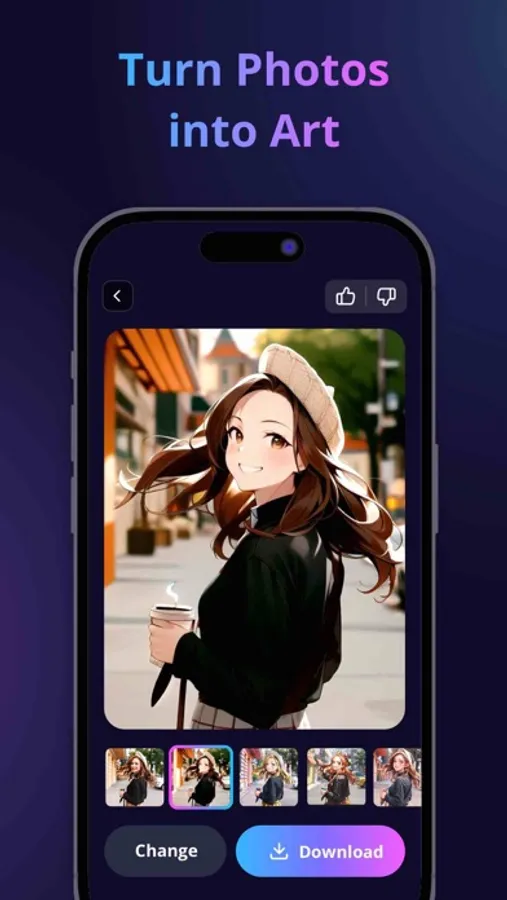 Experience the next level of image transformation with our groundbreaking AI image transformation app. Discover a multitude of mind-boggling new filters that will take your creations to new heights. Not only can you morph your images into captivating anime characters, but you can also dive into more realistic visuals that blur the line between fantasy and reality. With just a few taps and a single photo upload, witness the transformation of your beloved anime, cartoons, and now, with a touch of realism. Get ready to unleash your imagination and embrace different styles that will leave you breathless!