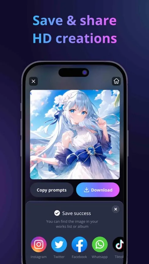 AI help you generated dream anime art just by entering a prompt. MORE THAN 20+ AI Art generator models in one app! You can't miss this if you like anime. Feel the power of AI Art now!
