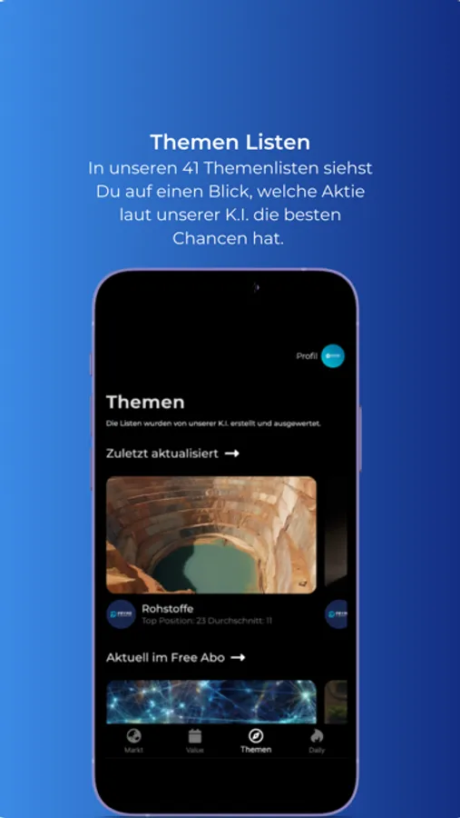 K.I.-basierte Analysen: Unsere Technologie durchforstet Quartalsberichte und liefert dir Top-Kandidaten. Eine Garantie gibt es nie, aber die Chancen für eine Überrendite sind höher.
