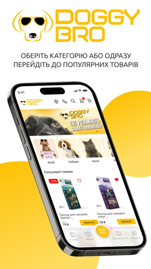 З Doggy Bro ваші покупки для домашнього улюбленця стануть ще приємнішими та вигіднішими. Приєднуйтесь до нашої спільноти та отримуйте ексклюзивні пропозиції та знижки. Завантажте додаток Doggy Bro зараз та зробіть свого улюбленця щасливим!