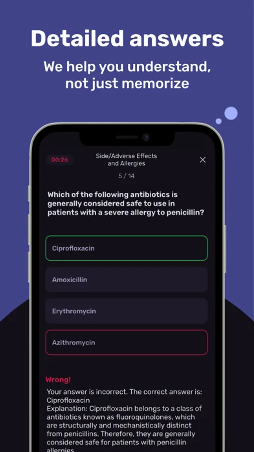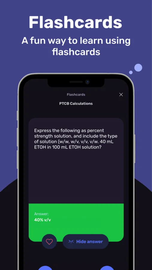 Swipe the cards to quickly review PTCB concepts without the need to go through the whole test, complete the right amount of questions for you, and get some quick studying in.