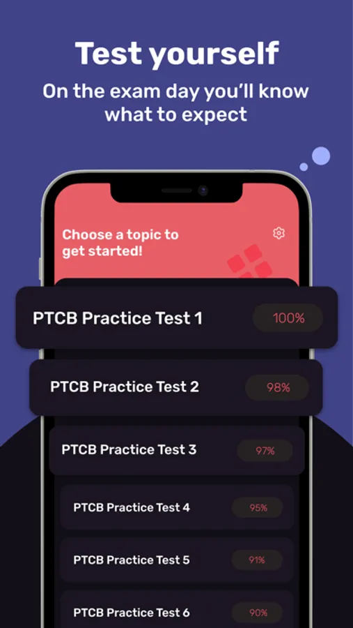 Get your PTCB score prediction based on how you pass the real exam simulator, and study the topics you need to revisit to improve your score.