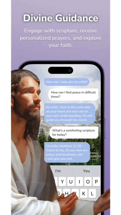 Chat with Jesus: Engage in interactive conversations with our advanced chatbot, allowing you to ask questions, seek advice, and gain valuable insights from the teachings of Jesus.