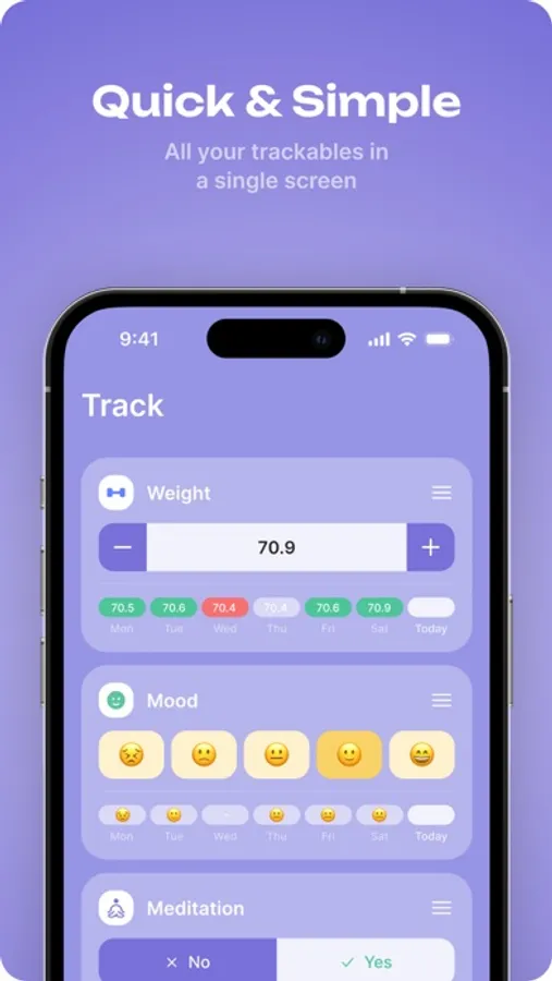 Unified Tracking: From weight to mood, streamline your tracking endeavors in a single app.