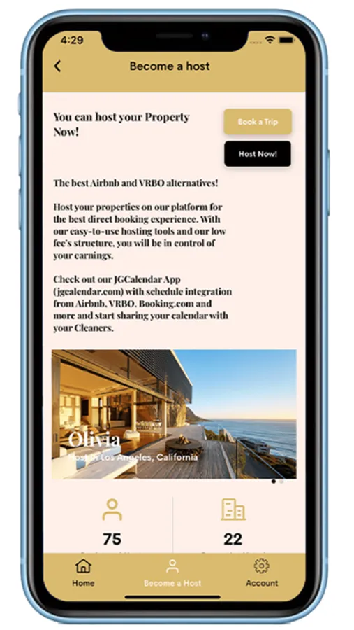 JG Vacation is the ultimate platform for property owners and travelers alike. Whether you're a host looking to list your property or a traveler searching for the perfect accommodation, JG Vacation has you covered. With seamless integration of multiple booking platforms, including Airbnb, VRBO, Booking.com, and more, this app revolutionizes the way you rent and book properties.