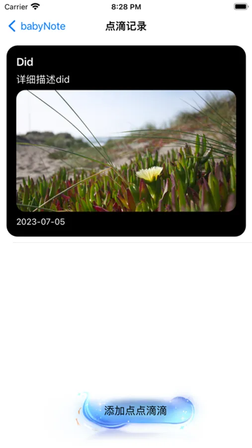 This is a mood recording application, specially designed for babies. Parents can use this app to record and track their baby's mood changes. Users can add photos, titles, and descriptions to each mood record.