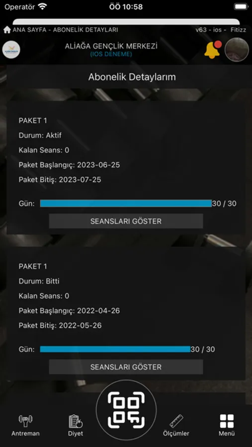 Abonelikler: Spor aboneliğinizi takip edebilir, kaç gün kaldığını, kalan seansları görebilir, mevcut paketler ve fiyat listeleri hakkında bilgi edinebilirsiniz.