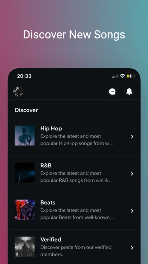 - Genre Filtering: Tailor your feed by choosing preferred music genres, ensuring effortless music discovery. Labels and A&R professionals find their next big talent with ease.