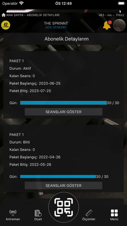 Abonelikler: Spor aboneliğinizi takip edebilir, kaç gün kaldığını, kalan seansları görebilir, mevcut paketler ve fiyat listeleri hakkında bilgi edinebilirsiniz.