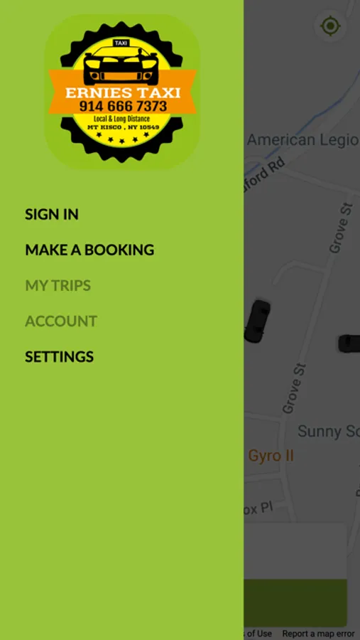 Ernie´s taxi is the easiest way to hail a ride, hands down! Set your pickup and drop-off location, select a car of your choice, tap "Pick me up here" and that´s it!