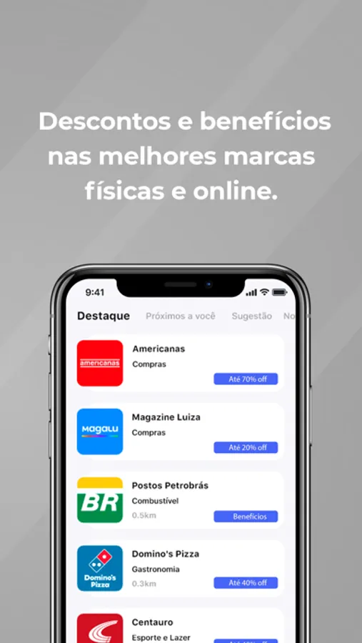Navegue por um cardápio de ofertas com marcas parceiras de diversos segmentos.