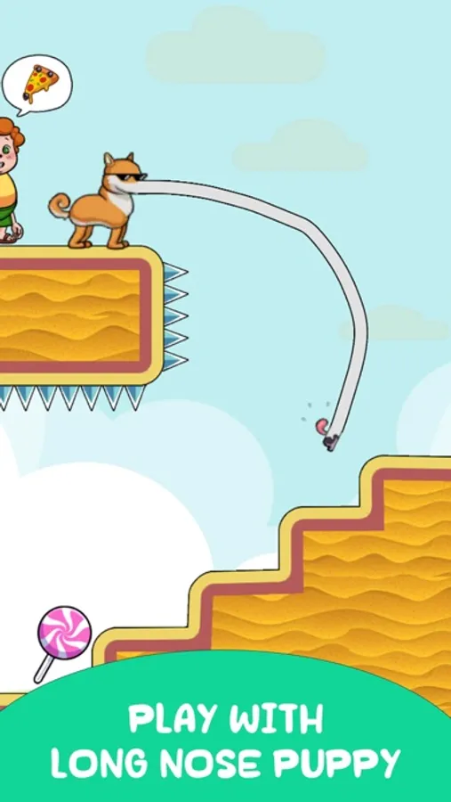 The game is easy to play. Slide the screen to stretch Long Nose Puppy Dog nose and find your way through the maze. Collect delicious treats scattered throughout the game while avoiding obstacles and challenges.
