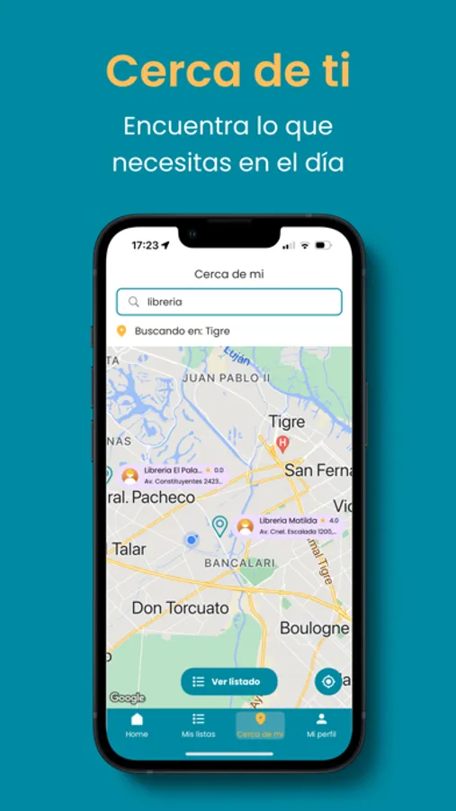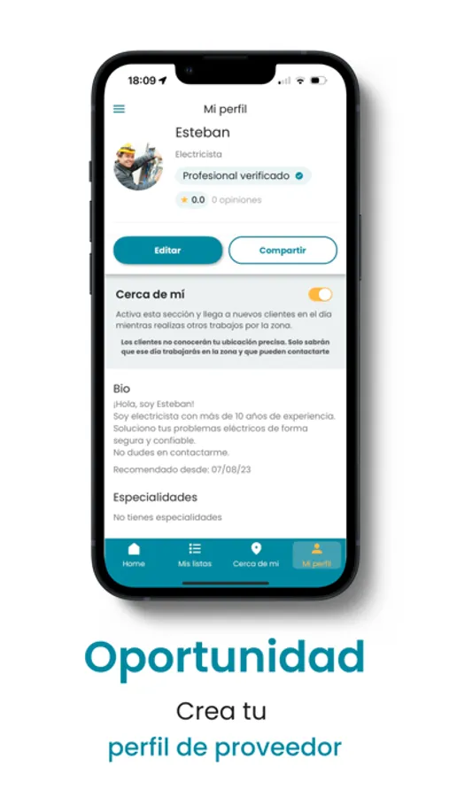 ¡Y eso no es todo! Si necesitas algo el mismo día, tocas "Cerca de mí" y al instante podrás ver el listado de proveedores y negocios disponibles ese día, tanto en formato de lista como en el mapa.