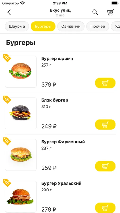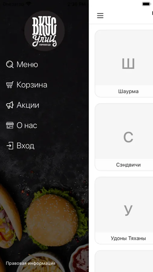 В приложении ВКУС УЛИЦ Стрит-фуд реализована концепция уличной кухни («street food»). Меню составляют избранные блюда со всего света: шаурма (шаверма), гирос, панини, бургеры, хот-доги, удоны и другая вкуснятина.