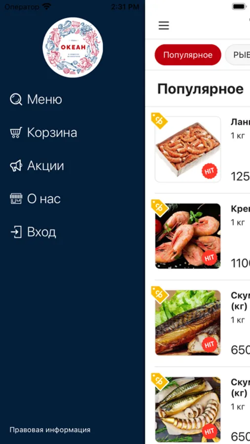 Мобильное приложение Океан - предлагает свежую рыбу, морепродукты, пенные напитки высшего качества в шаговой доступности.