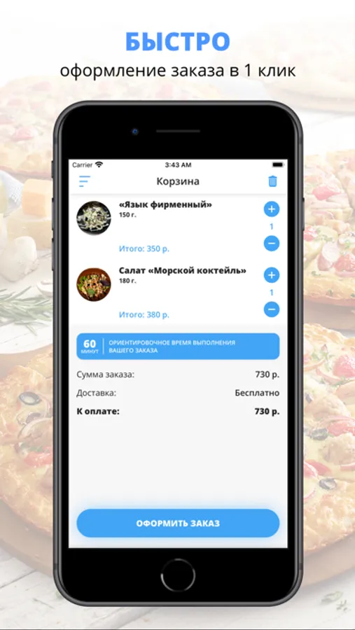 Скачивайте наше приложение, оформляйте заказ и наслаждайтесь любимой едой, где бы Вы ни были! Приятного аппетита!