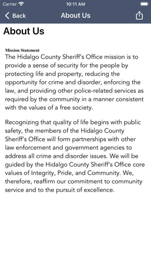 The Hidalgo County Sheriff’s Office mobile application is an interactive app developed to help improve communication with area residents. The Hidalgo County TX Sheriff’s app allows residents to connect with the Hidalgo County Sheriff’s Office by reporting crimes, submitting tips, and other interactive features, as well as provides the community the latest public safety news and information. The app is another public outreach effort developed by the Hidalgo County TX Sheriff’s Office to improve communication with county residents and visitors. This app is not intended to be used to report emergency situations. Please call 911 in an emergency.
