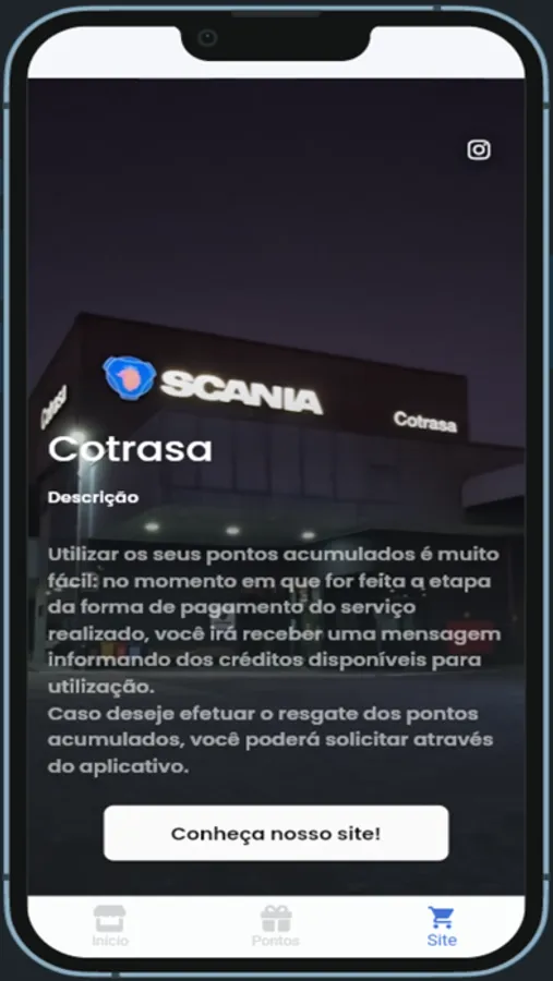 Para os serviços realizados nos veículos Scania, em uma das instalações das casas Cotrasa, o motorista poderá acumular pontos que o em premiações para o mesmo.