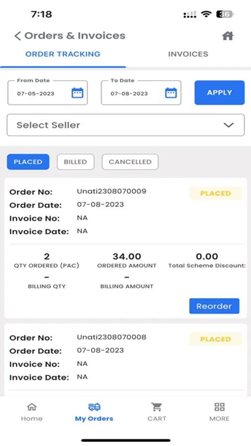 - Reorder any previously placed order simply by clicking the Reorder button & save time & hassle of adding all the