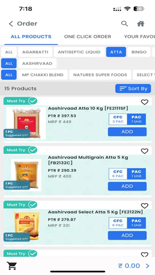- Search any product through the smart search option based on name, price & even grammage of the product.