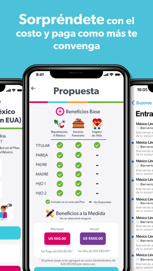 3) Seguro de Vida en México – Para el titular del plan, con protección para su familia desde $50,000 pesos hasta $250,000 pesos. Sujeto a elegibilidad.