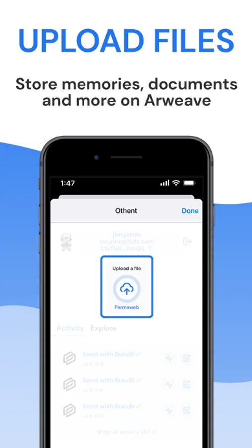 - Upload files: Othent makes it easy to upload files, so you can store your memories securely and always have them under your control.