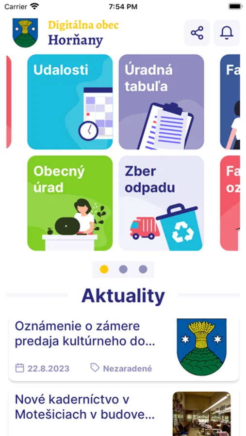 Na jednom mieste aktuality, udalosti, informácie z obecného úradu, počasie, kalendár zberu odpadu, farské oznamy, história, fotogaléria, podnety, užitočné návody, zasielanie dôležitých notifikácií a všetky ostatné informácie pre občana.