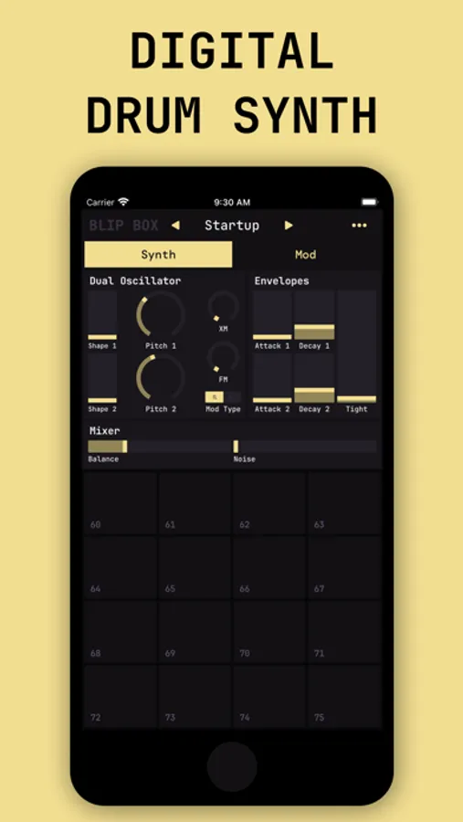 Blip Box is a sixteen voice drum synthesizer that may look nice but can sound mean. Blip Box takes inspiration from a variety of synths, both analog and digital. We pulled together all the things we love about drum synthesis: complex audio rate modulation, snappy envelopes, harsh effects; and put them together in a compact, touch-friendly package. The result is a truly unique digital sound engine that has taken on a life of its own.