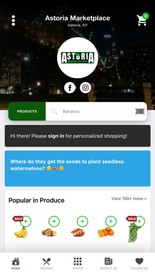 Order your groceries from Astoria Marketplace on the go on your mobile device or from your iPad on your couch. Our award-winning grocery app makes grocery shopping a breeze with quick access to our weekly circular, an easy-to-use product search, detailed product details and labeling, tasty recipes, and family meal planning tools. What could be better than that?