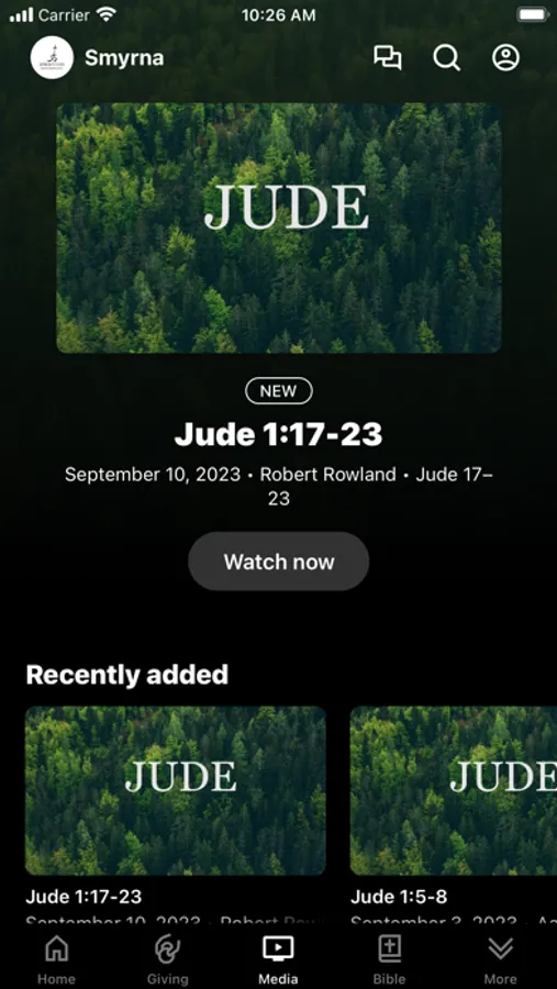 This app will help you stay connected with the day-to-day life of Smyrna Baptist Church. With this app you can: watch or listen to past messages; stay up to date with push notifications; share your favorite messages via Facebook, or email; and download messages for offline listening.