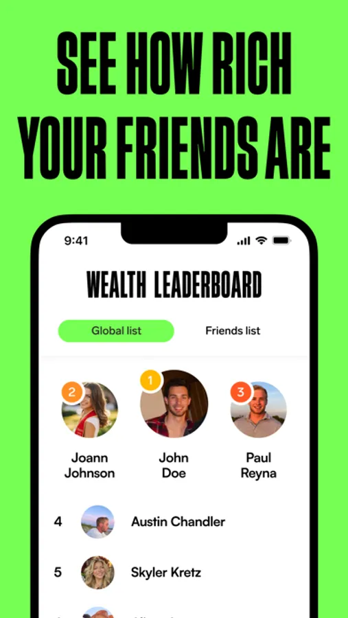Wealth Leaderboard is a leaderboard of global wide wealth. You can link your bank account securely by logging in with Plaid. Once you’ve linked your account, you can see where you rank amongst other people in the world. You can enable contacts to see where your friends are ranked relative to you. Your balance is private, no one can see it. But people can see where you rank.
