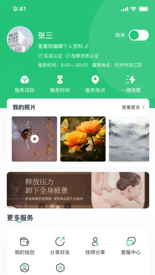 金猫管理版是oto上门服务平台,汇聚上门推拿按摩SPA等品类,为用户提供高价值高标准的养生健康、保健的体验。管理版为技师提供一键接单,方便快捷。您可以随时随地接单、查看日程、可以查看订单收入、提现等功能。