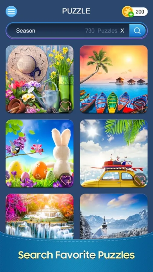 Enter keywords, search for your favorite jigsaw puzzles, click favorite, and play for free.
