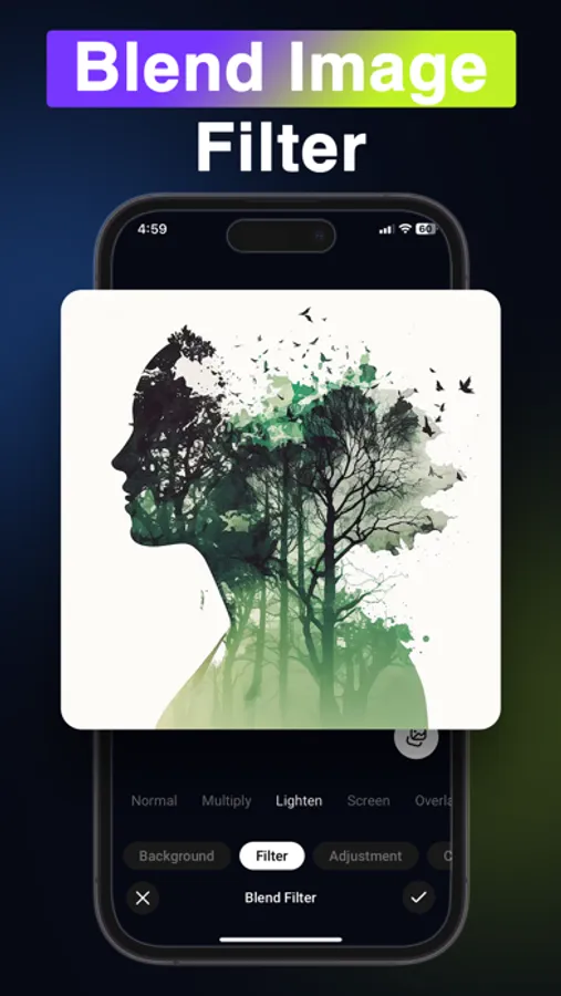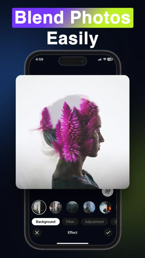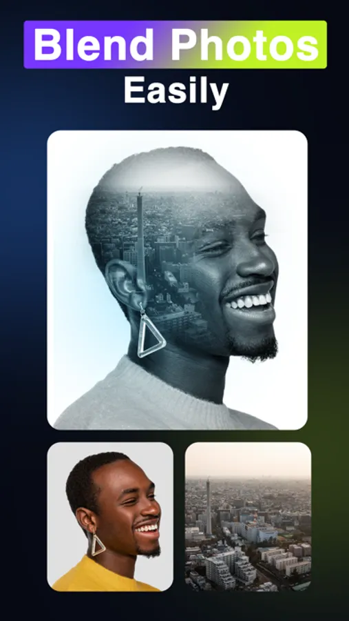 Photo blender with beautiful effects using Blend Photos. Create double exposure image in a few taps. With Blend Photos, you can access to full range of photo blender & picture overlay featues. Quickly and easily level up your photo mixer.