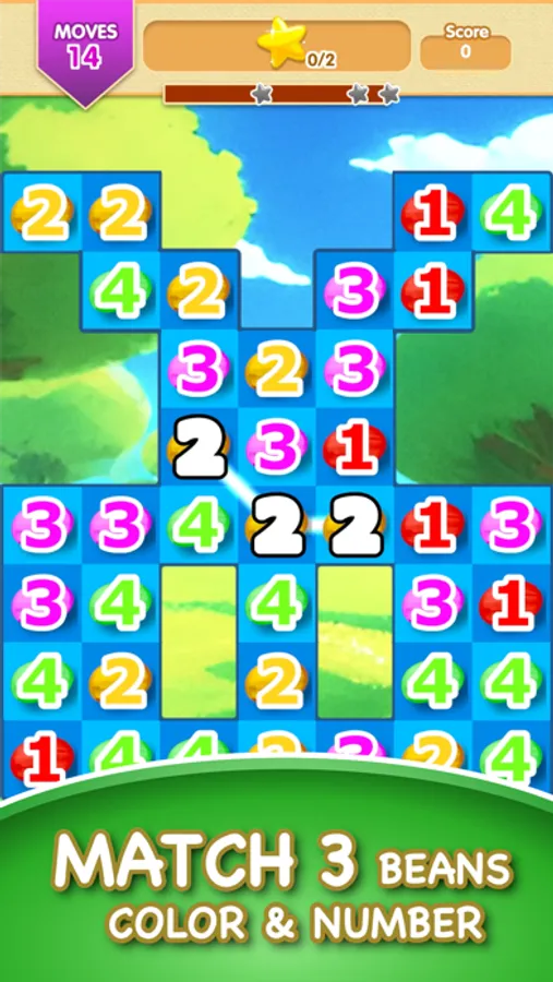 Embark on an addictive match 3 puzzle game filled with colorful beans with numbers written on them and exciting challenges!