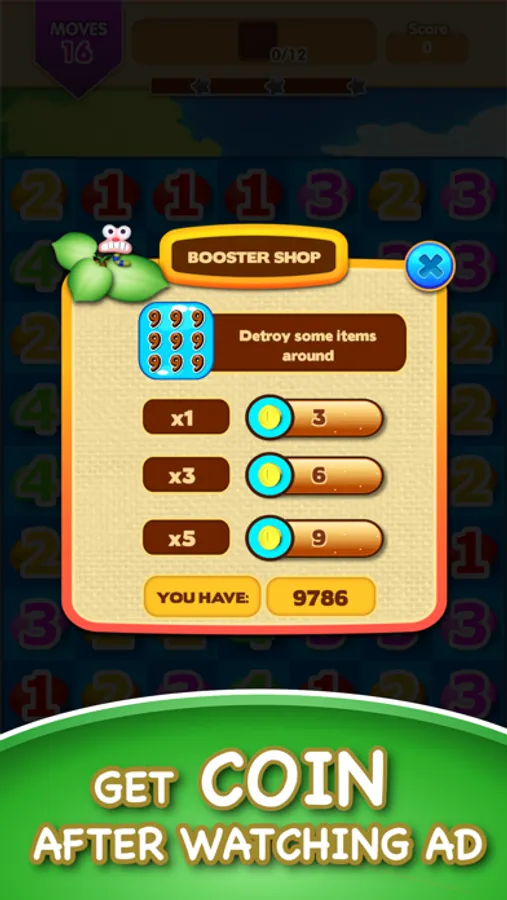 Get coins by watching advertisement videos and exchange them for powerful booster items to enhance your gameplay.