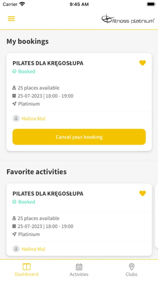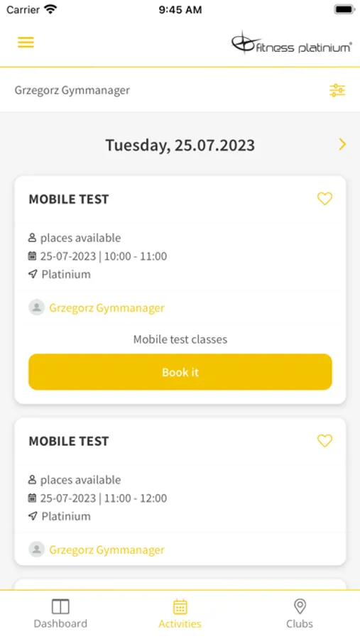 Aplikacja dla klubowiczów Fitness Platinium Jarosław.