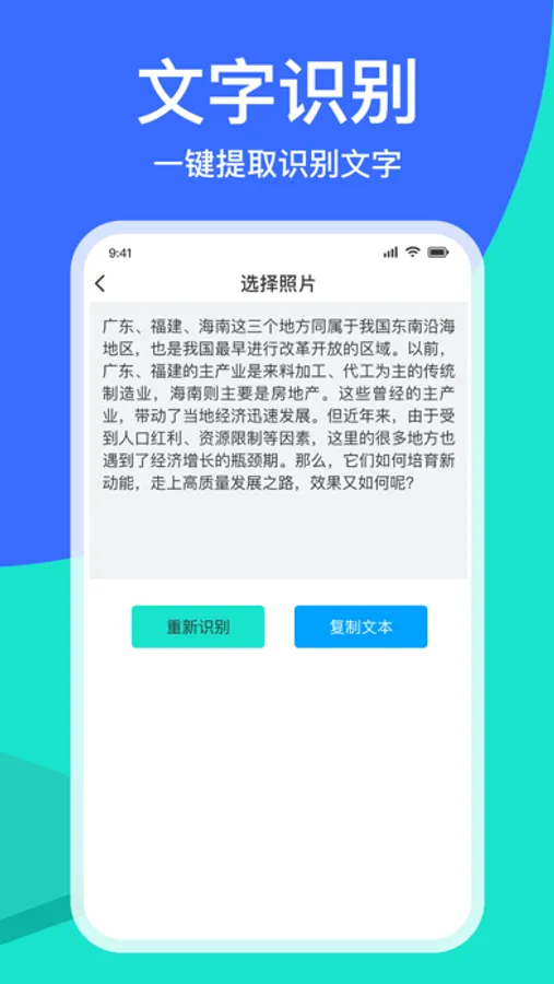 文字识别:一键提取图片中的文字。