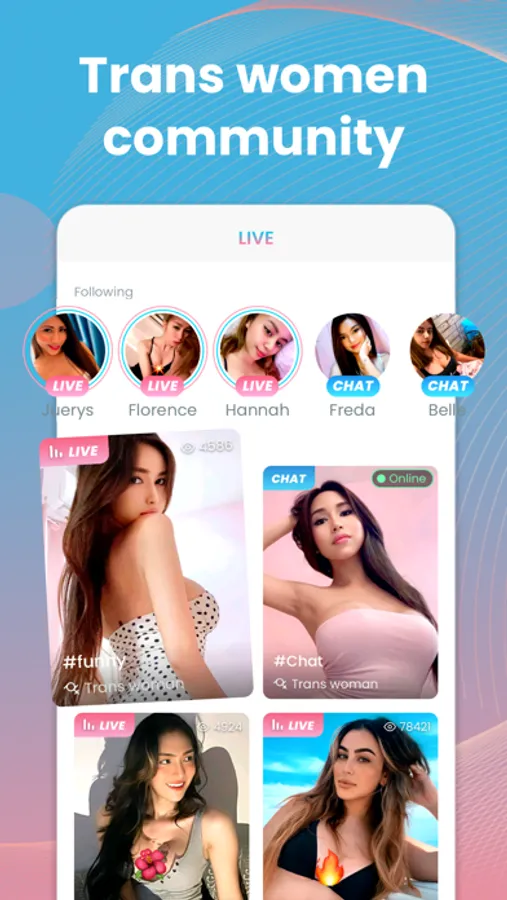 TSChat is a social community for transgender women looking for chat, friendship, care & support. We also provide you with a private and safe place where you don’t worry about judgment or discrimination.