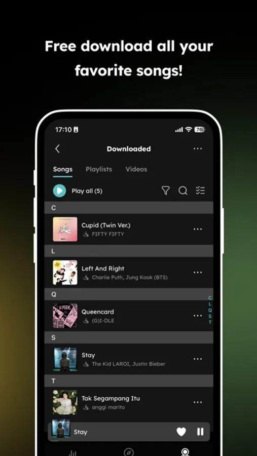 Download your favorite tracks and enjoy them offline, anytime, anywhere. No internet? No problem! Your music is always with you.