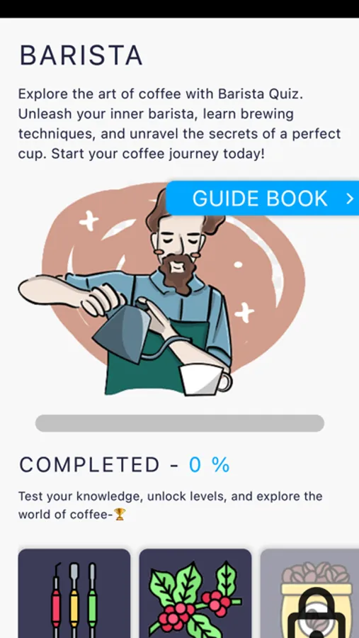 Immerse yourself in a fun and educational journey as you unlock new levels and progress from a coffee enthusiast to a barista expert. With interactive quizzes and detailed answer descriptions, you'll gain practical insights and deepen your understanding of the coffee-making process.
