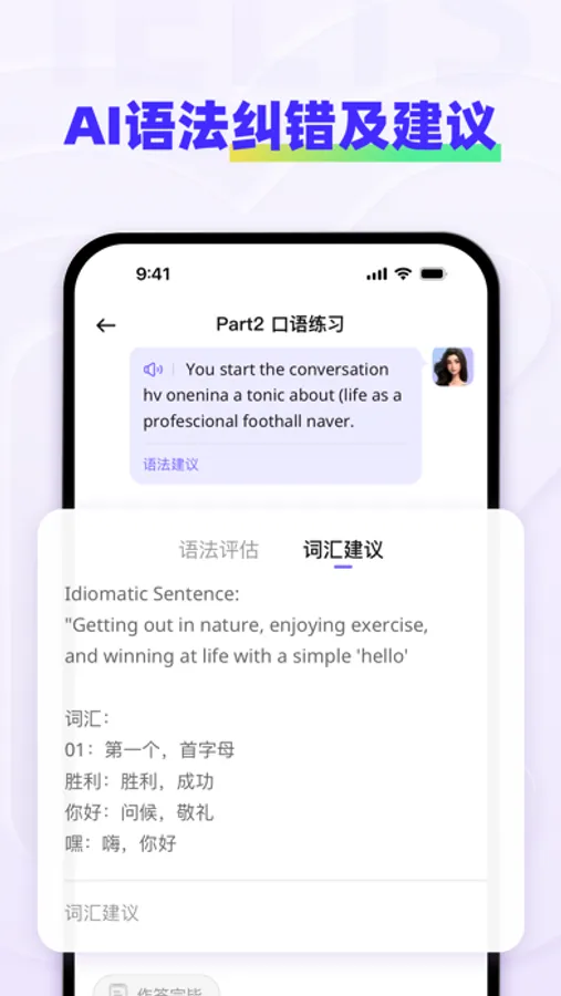 利用强大的AI技术,能够纠正用户口语中的语法错误,并给出相应的建议和改进意见,帮助你提升语法准确性和表达流利度。