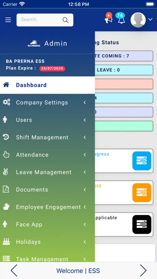 This app is used for management (admin) of BA Prerna ESS. Using this app you can manage your company members from anywhere. You can receive notifications of new members joining your company request, circulars, complaints and any important event bookings. You can also get updates about everything related to your company.