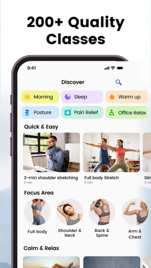 Say goodbye to body aches and pains as our carefully designed stretching routines target specific areas such as the neck, shoulders, back, hips, and more, alleviating discomfort and improving flexibility.